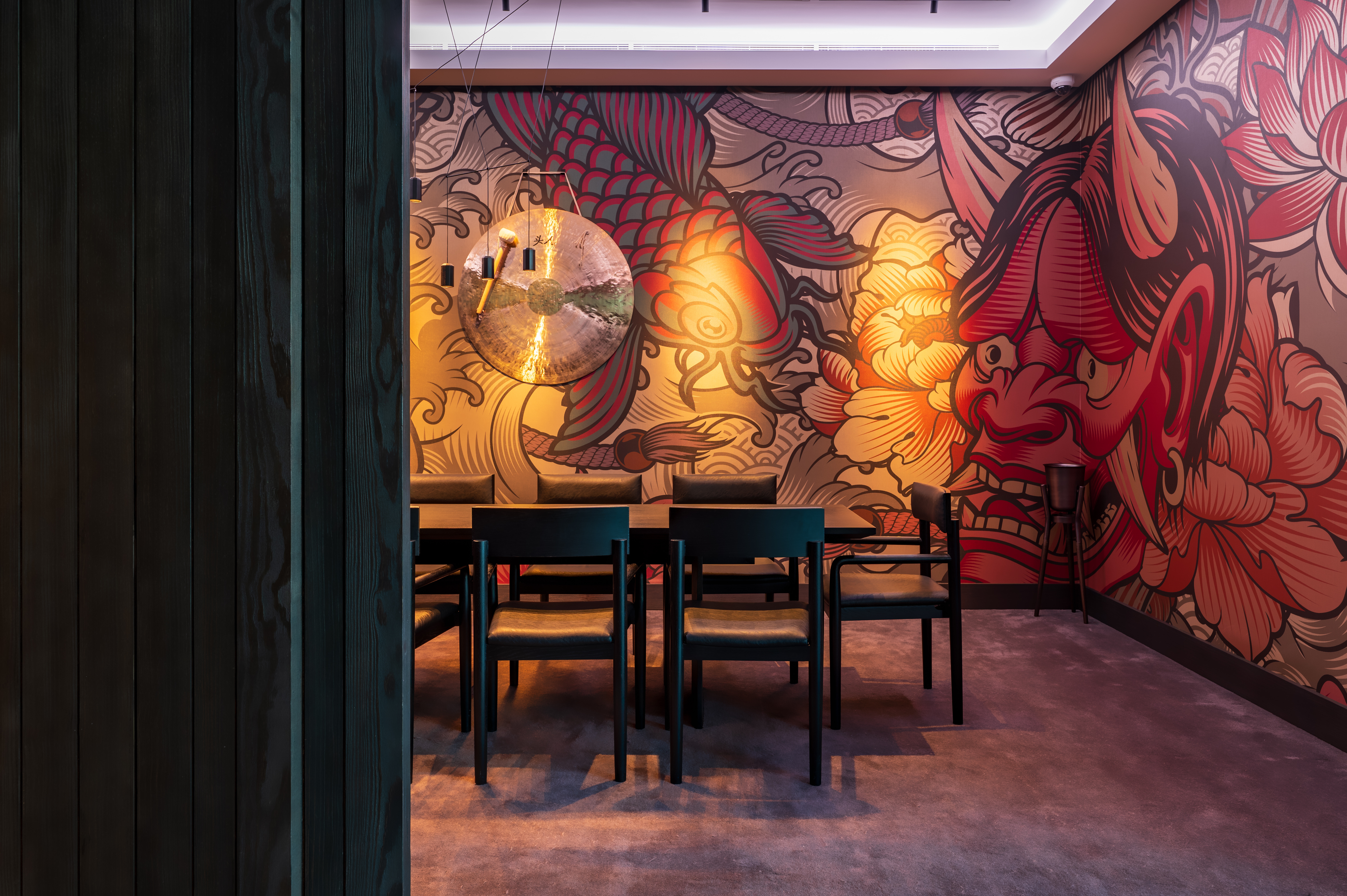 If you’re after something a little more relaxed, the second private dining room might be just what you’re looking for. This room is designed more like a lounge, with big, comfy sofas that make it ideal for cocktail events or casual get-togethers. Whether it’s a birthday celebration, a laid-back evening with friends, or an informal business chat, this space offers a cozy yet stylish atmosphere that’s hard to beat. Picture yourself sipping on expertly crafted cocktails, enjoying your favourite Ronin dishes, and soaking in the cool, intimate ambiance. It’s private dining in Dubai at its best—relaxed, luxurious, and totally unforgettable.