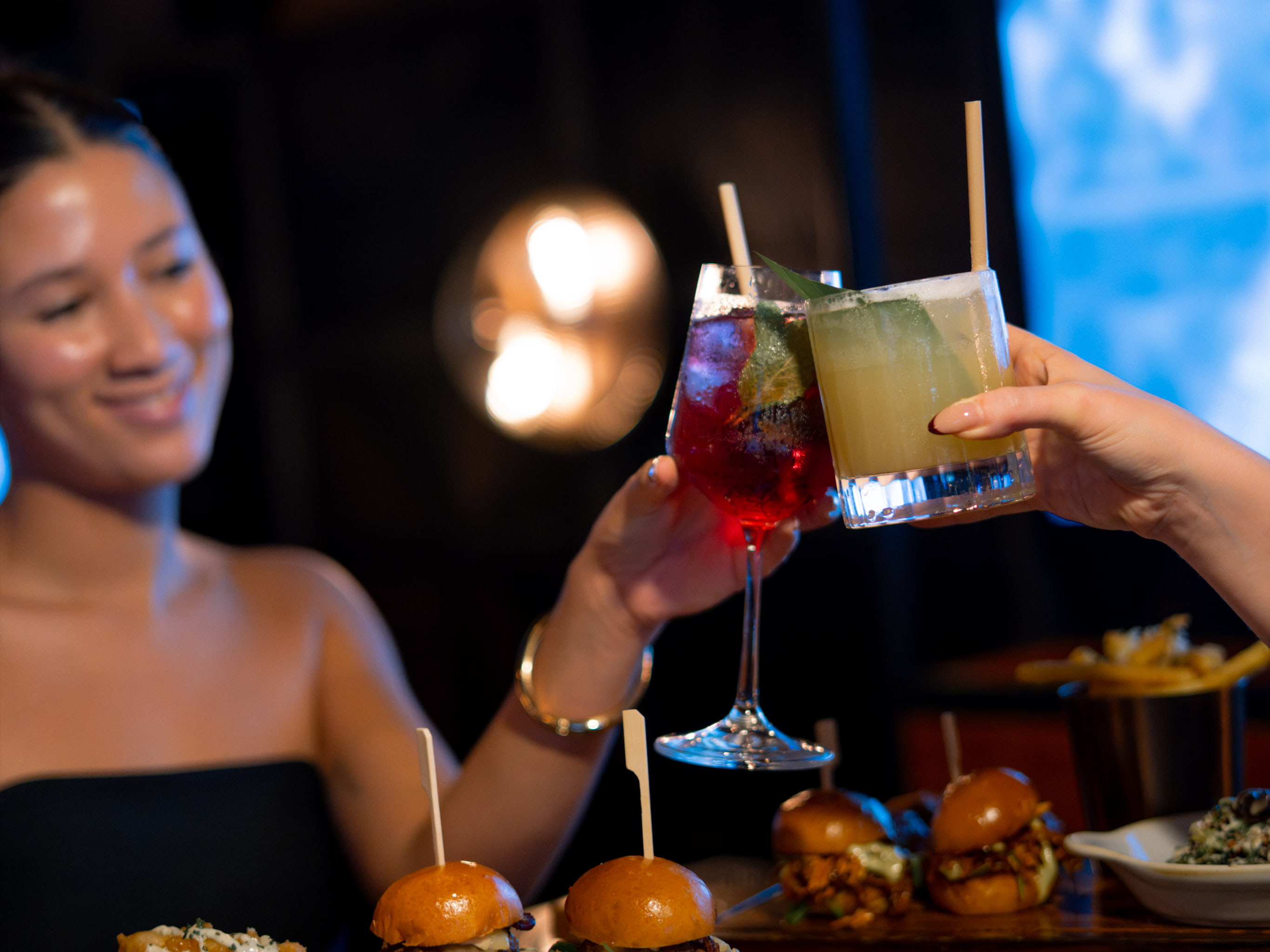 Your evening includes four bites from the specially curated ladies’ night menu and five drinks of your choice for just AED150, making it one of the most exciting options for a Ladies Night in JBR. The food goes far beyond basic bar snacks. Think indulgent Dirty Burger Sliders layered with brie, maple beef bacon and truffle aioli for that rich, satisfying bite. Or opt for the crowd-favourite Cauliflower Wings coated in Goose Island’s famous Buffalo sauce, delivering just the right amount of heat and crunch, perfect for sharing between rounds of drinks. These dishes are designed to be social, flavour-packed and ideal for long, relaxed tables where the conversation flows as easily as the cocktails.