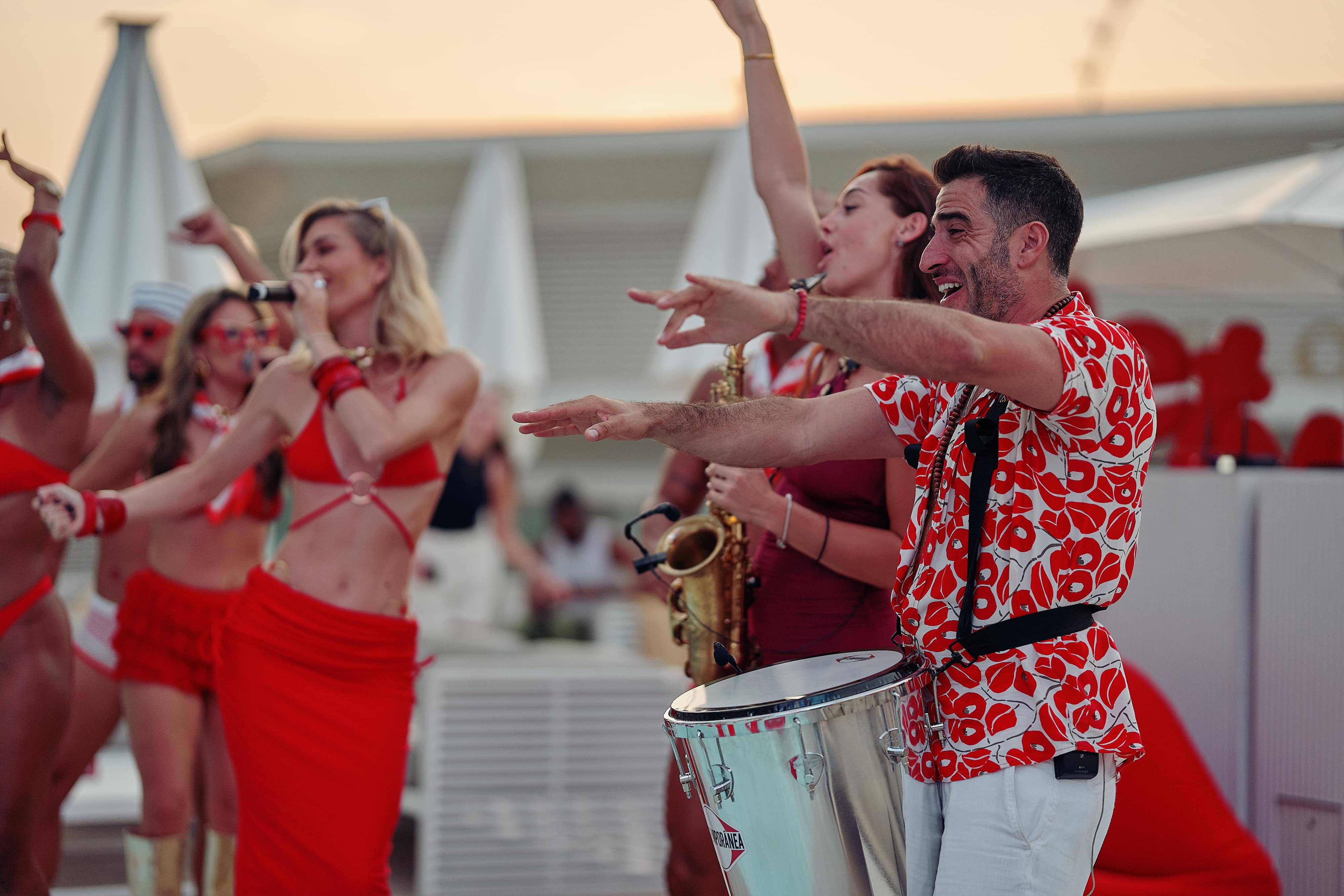 Wet Cherry is your weekly poolside rendezvous — a celebration of sunshine, style, and sound. From the moment you arrive, the mood is set by a carefully curated DJ soundtrack spinning the best of Ibiza classics, moving effortlessly from chilled house to iconic classics. It’s the kind of soundtrack that makes time slow down, encouraging you to stay just a little longer, cocktail in hand, soaking up every moment of your Ladies day in Dubai.
